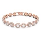 Deze armband met een prachtige mix van metaal met roségoudkleurige toplaag en kristallen pavé voegt een vrouwelijke sprankeling toe aan elke look.