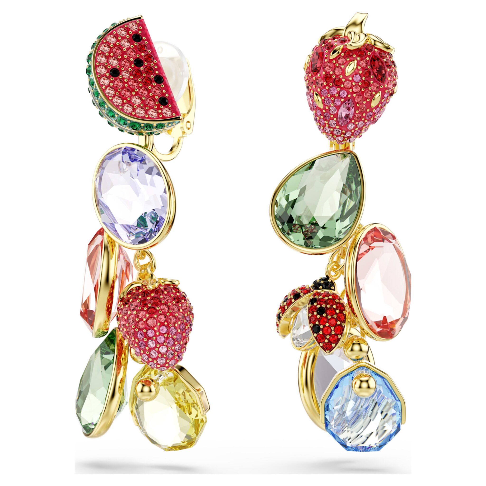 Een statement-stijl voor uw meest speelse dagen: deze Swarovski-oorbellen combineren kleurrijke kristallen met grappige vormen, waaronder aardbeien, een lieveheersbeestje en een fris stuk watermeloen. Een asymmetrische clipstijl die een gevoel van vreugde belichaamt.