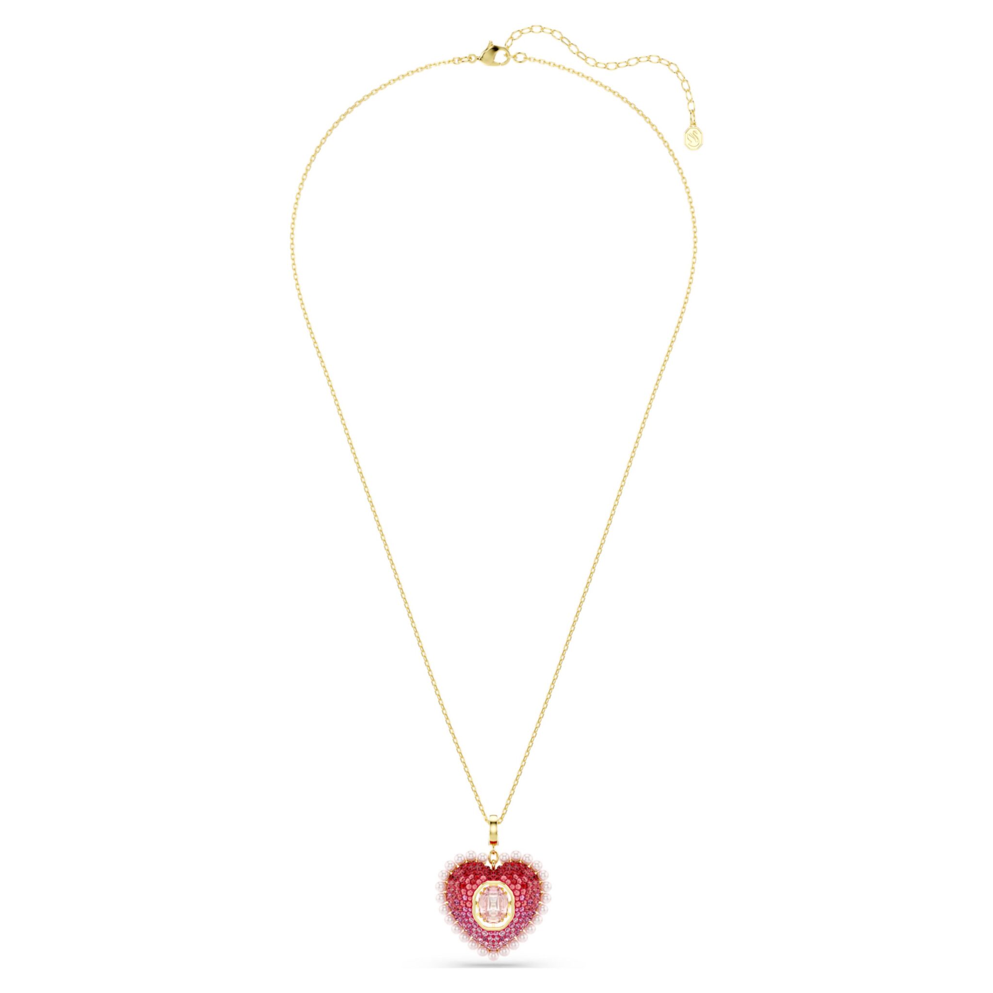 Deze opvallende hanger is een statement van pure passie. Het is voorzien van een afneembare bedel in de vorm van een liefdeshart, versierd met Swarovski Crystal Pearls en glinsterende kristallen, allemaal in een kleurverloop van romantische tinten. In het midden creëert een roze dancing stone eindeloze lichtweerkaatsingen bij elke beweging. Draag het aan de ketting of bevestig de bedel aan andere Swarovski-sieraden om uw stijl te personaliseren
