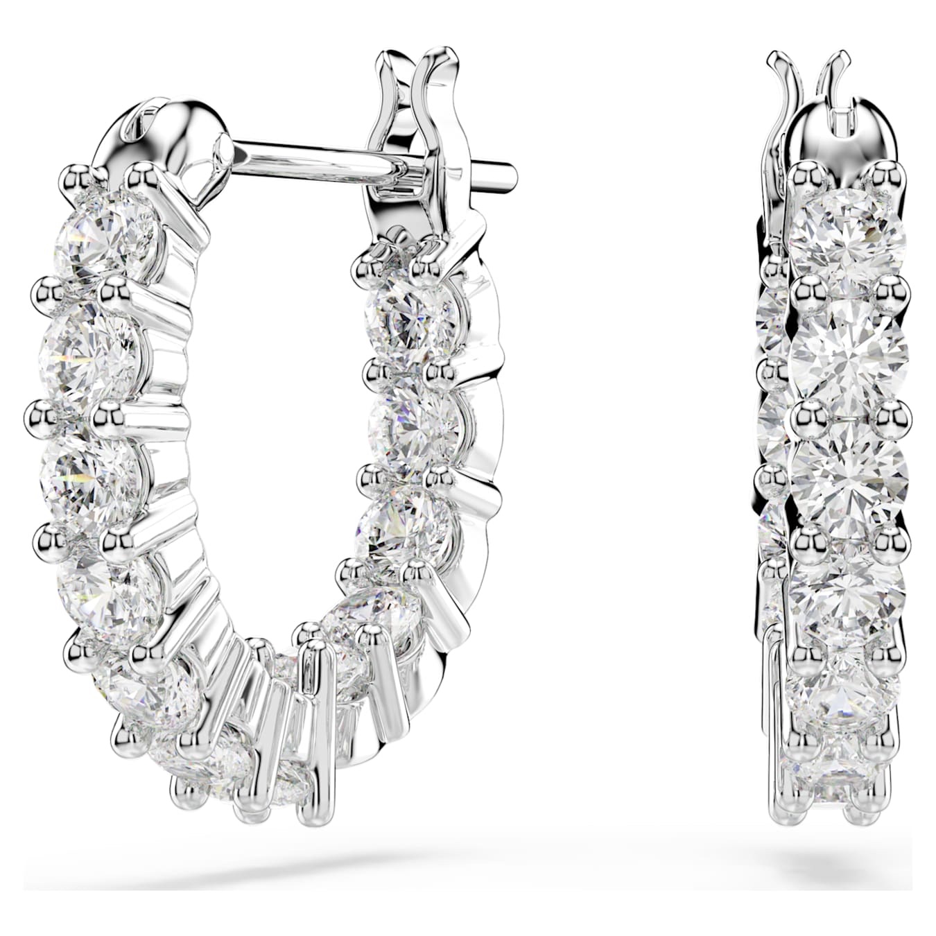 Deze steekoorbellen van Swarovski zijn een prachtig, tijdloos sieraad. Beide ringoorbellen zijn bezet met tal van sprankelende witte kristallen die hun aantrekkelijke look versterken met een subtiele glans. Deze oorbellen kunnen het best worden gedragen met bijpassende kettingen en armbanden, en zijn een prachtig cadeau voor informele gelegenheden.