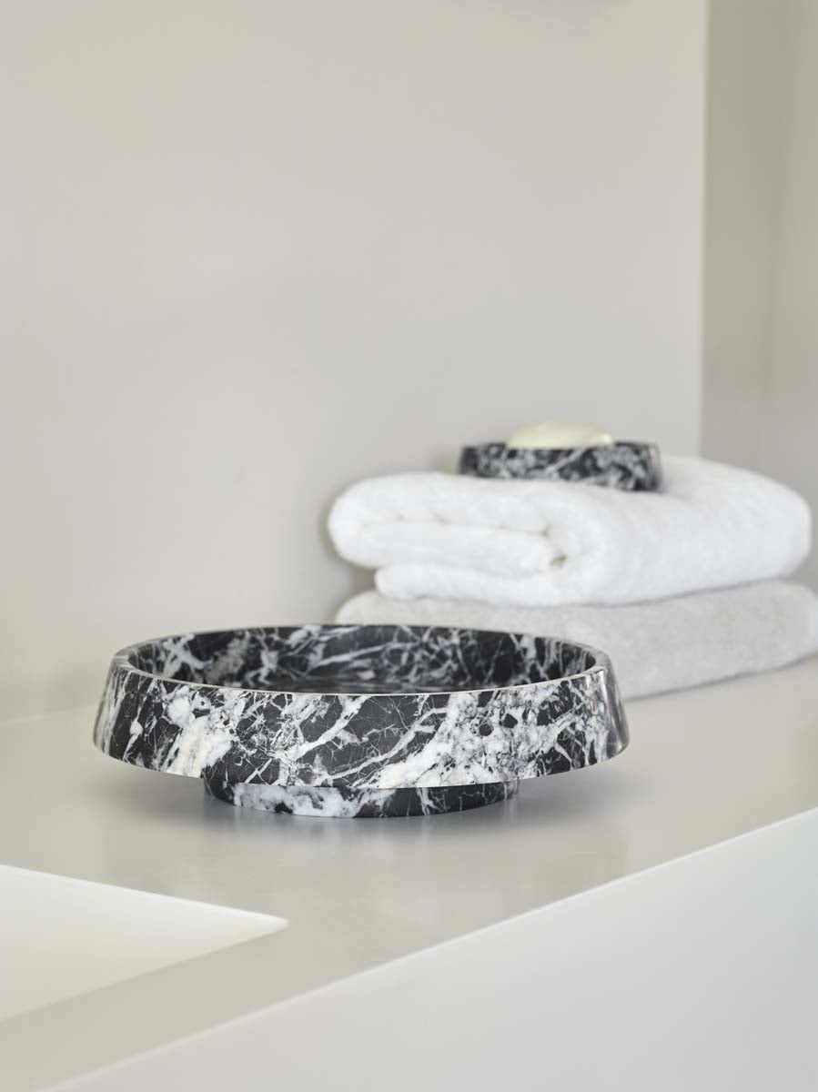 Een boeiend ensemble vervaardigd uit prachtige natuursteen. Elk stuk in deze collectie is zorgvuldig met de hand vervaardigd uit het beste Italiaanse marmer, wat de tijdloze schoonheid en elegantie van dit luxueuze materiaal benadrukt.